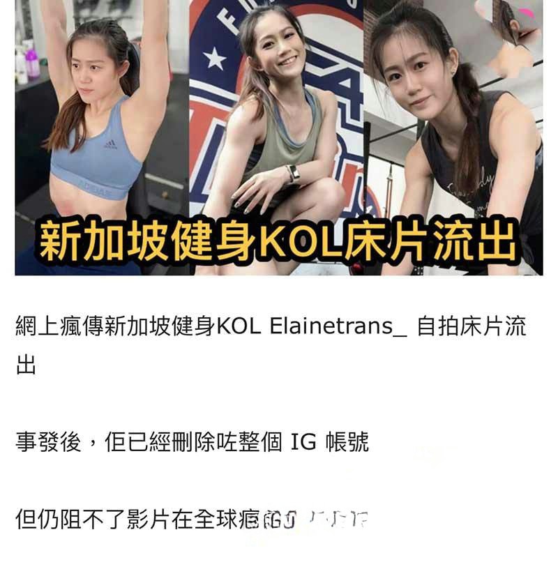 新加坡健身网红KOL【Elainetrans】自拍床片流出全球疯传 事发后IG已注销